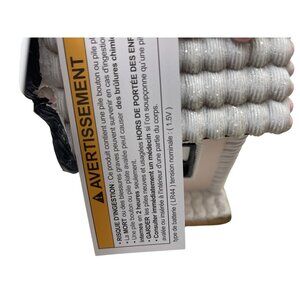 This intricately designed haunted house features ghost and pumpkin accents, ideal for Halloween-themed indoor decorations. Battery-operated for ease and convenience. • Requires 3AA batteries (not included) • "Try Me" button includes 2 LR44 button batteries • Detailed pink, black, and white design • Lightweight and portable • LED lighting for added charm No visible flaws; excellent condition. Top to bottom = 8 inches.