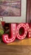 Brighten your space with this light-up JOY sign. Features vibrant red and white colors. Ideal for festive decor.