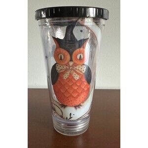 Light-Up Owl Tumbler Cup with Lid – 3 Light Settings – Halloween/Fall Design