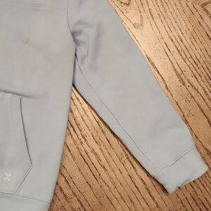 Light blue hooded sweater size 8 boys has a small stain as shown in pic Xersion