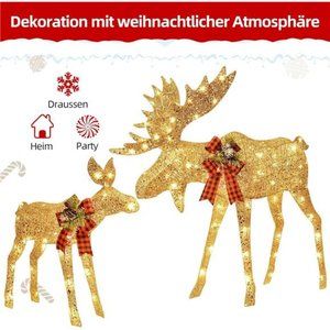 Lighted Christmas Decor Moose Family - Light up Moose 2 Set with 135 Lights,Gold