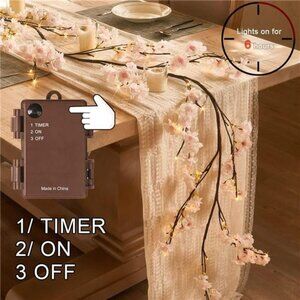 Lighted Garland Spring with Cherry Blossom 96 Fairy Lights 6FT for Mantle