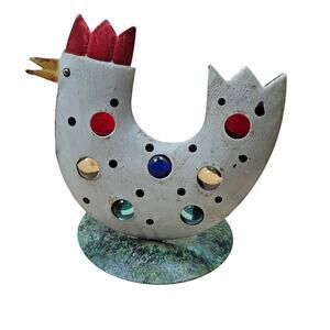 Lighted Jeweled Hen Candle Shines Through the Clear colored glass stones