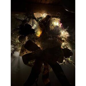 This enchanting Hammacher Schlemmer lighted nativity wreath radiates warmth and holiday spirit. Featuring rich velvet details, intricate craftsmanship, and serene lighting, it captivates as a centerpiece.