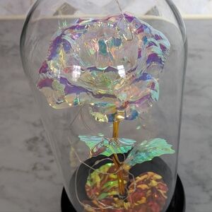 Rose enclosed in glass. Great gift idea. Uses 3 AAA batteries. Beautiful!