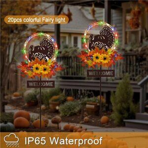 Lighted Thanksgiving Turkey with Welcome Sign Outdoor Fall Decorations Solar