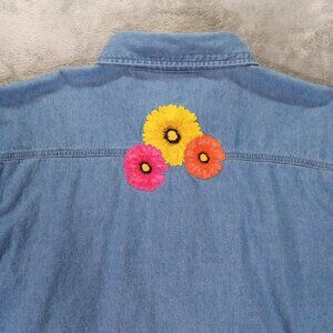 Lighthouse Apparel Denim Shirt Women XXL 2XL Floral Embroidered Artsy Colorful