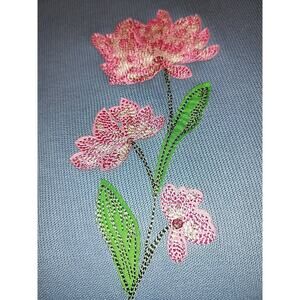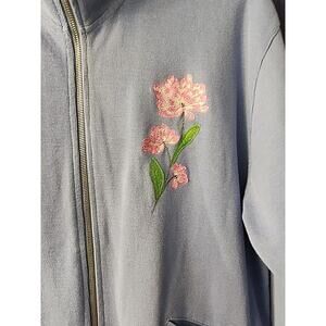 Lighthouse Apparel Soft Blue Jacket With Flowers on front women's size XL