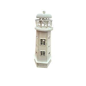 Lighthouse Candle Votive Holder Distressed Off White Metal 12.75" High Nautical