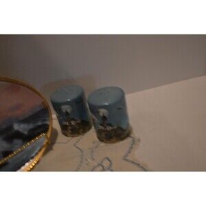 Vintage pieces in VERY good condition. The salt and pepper shakers have nautical, lighthouse and more on them. The plate is a stunning Thomas Kinkade first issue. Bradford exchange created in 1995. These three pieces will look beautiful on table, counter, window and more. Well preserved.