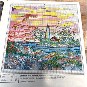 This cross-stitch pattern offers a tranquil lighthouse scene with intricate detailing. Ideal for crafting enthusiasts seeking a creative, rewarding project.