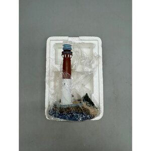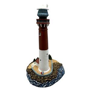 Lighthouse Figurine Base Nautical Decor 6.5" red brown bushes rock blue READ