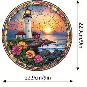 Lighthouse Suncatcher Ocean Sea Sunset Flowers Crackle Colorful Vinyl