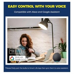 Voice Control: After being paired with the free Smart Life app via Wi-Fi, these smart bulbs work with Alexa and Google Assistant for hands-free voice control.