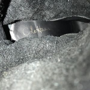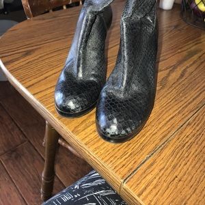 Black leather high heeled shoes. Limited nike air soles on the insides and bottoms. Has minimum scuff on the toe. Pictured above.