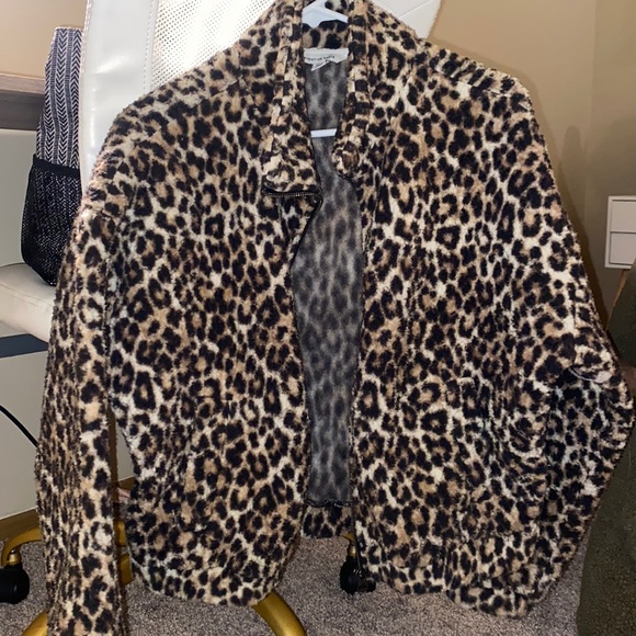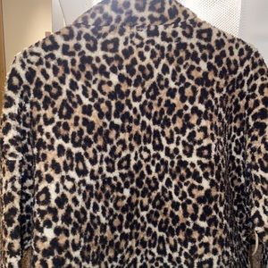 Lightly worn, fuzzy bomber jacket, pockets and zipper, animal print jacket