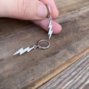 Lightning Bolt Huggie Hoop Earrings White Gold Dangle Charm Earrings