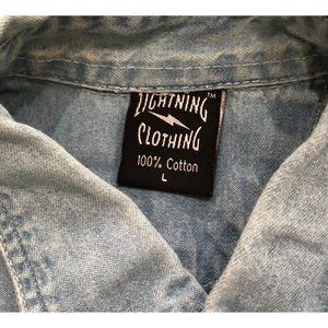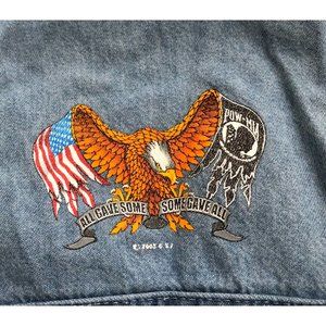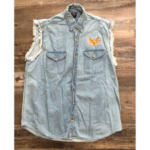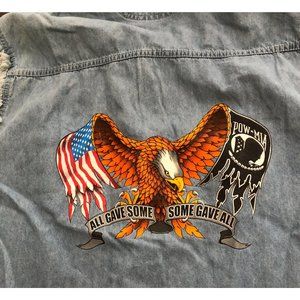 Lightning Clothing Mens Large Blue Motorcycle Eagle Graphic Denim Button Up Vest