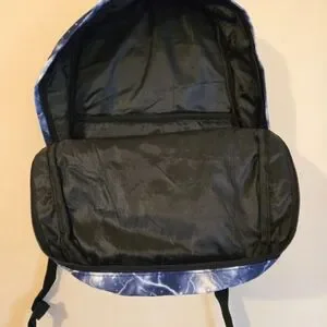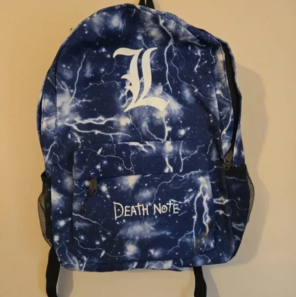 Anime backpack of L from Deathnote. Scuffs and marks noted on front of the bag, and small tear on the inside.