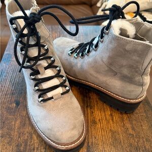 Stylish boots with lace-up design and fur trim. Perfect for a chic winter look. Once worn once!