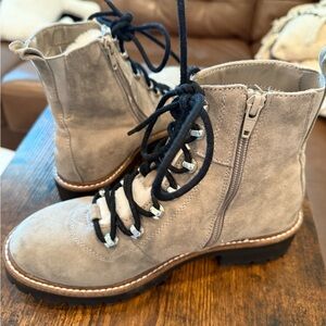 Lights Tan Faux Suede Lace-Up Boots with Fur Trim