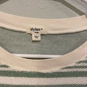 Lightweight 100% Cotton Sweater by Dylan. Sage green and Cream Stripe. This is such a cozy sweater. Slouchy Sleeves