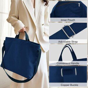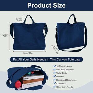 Features: Crafted from durable heavyweight cotton canvas, this tote is built to last with reinforced corners and a solid brass snap closure. The 1.5-inch cotton strap helps distribute weight evenly, making it super comfortable to carry. It’s designed to be worn as a crossbody, shoulder bag, or handheld tote with an adjustable strap for easy switching. Spacious 17 x 15 inches, perfect for laptops, gym gear, or beach supplies. Multiple pockets including an internal zippered pocket and open compartments help keep your essentials organized. Lightweight and ergonomic, the padded handles mean all-day comfort, whether you’re commuting, shopping, or heading to the weekend. The sleek, minimalist look suits every style, making it a perfect accessory for any casual or work outfit.