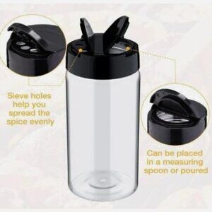 2 Independent Flip Lids: the flip lid design of the plastic seasoning container is very considerate, it meets the precise amount of cooking, take it as you go, you haven't to remove the lid to measure out your spices, if you just want to sprinkle the spice, the side holes are large enough to allow the dried herbs to pass through