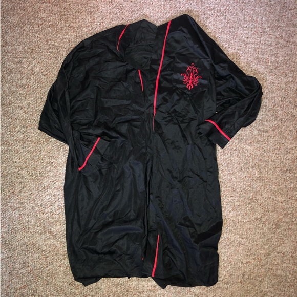 Lightweight Silky Feel Black Robe with Red Detailing.