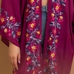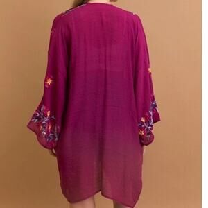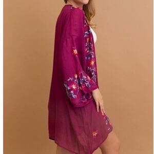 Lightweight Boho Festival Floral Embroidered Anemone Kimono Fuchsia