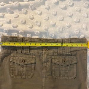 Cute and cozy lightweight cargo skirt in excellent condition. Four pocket design with belt loop and small slit at hemline. 100% cotton. Measurements in pics are an approximation. Non smoking/pet household.