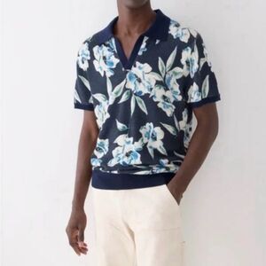 ❤️Lightweight Cashmere Floral Polo Shirt/Sweater - Navy and Blue | L
