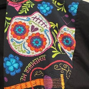 Lightweight, gathered waist jacket with buttoned pockets and print lined hood. Only the lapel and hood are lined. Coco - Disney movie inspired.