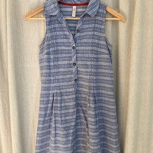 Knee length, slightly scooped hem with a collared top and functional buttons.