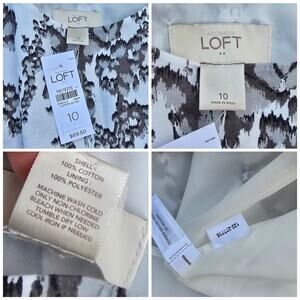 Lightweight Cotton Dress Loft Size 10 Sleeveless Gray White Floral Print NWT