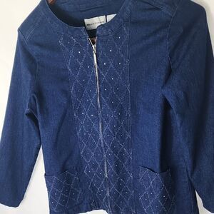 Lightweight Denim Jacket With Lattice Faceted Stud Detail Size 12