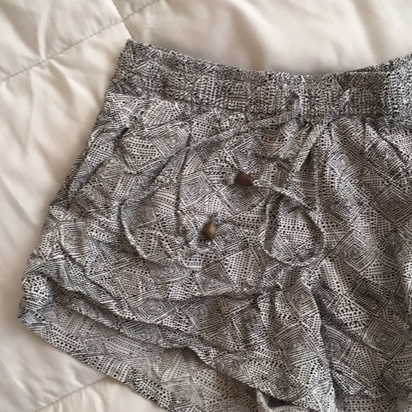 Flowy shorts from Old Navy! Wooden beads at the end of the drawstrings. Wrinkled from storage. Worn once! Since they are meant to be flowy, they do fit a little loose around the legs for an XS. 100% rayon.