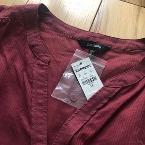 This blouse is light and a little bit sheer. It’s new with tags but has some wrinkles from storage. It’s a generous size xs, so could easily fit a little bigger. The color is perfect for a warm, fall day!