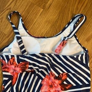 Lightweight Floral Tankini top sz large NWT coral blue white adjustable straps