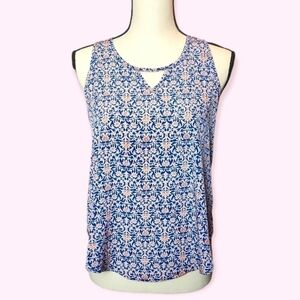 Lightweight Flowy Peekaboo Back Drop Tail Boho Print Sleeveless Blouse Small