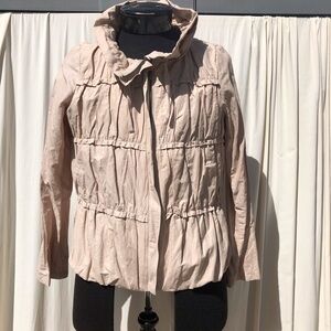 Lightweight Full Zip Jacket Size Large tan Crinkle High Neck Lined*