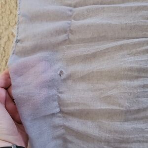 Tassel trim along all sides. There is a small hole and run as shown, but shouldn't be noticeable when worn.