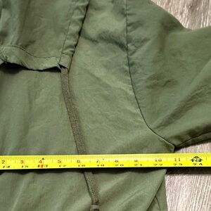 Stylish green hooded jacket with drawstring waist and front pockets. Perfect for casual wear. Great condition.