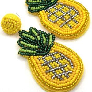 Lightweight Hand Beaded Summer Tropical Fruit Pineapple Seed Bead Earrings New