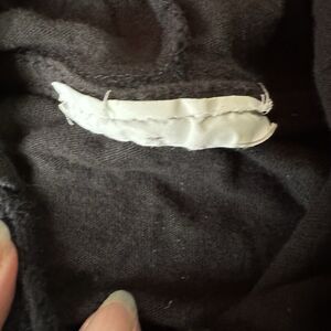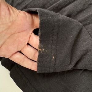 Flaw: small hole on back by collar & discoloration on sleeve (as pictured)