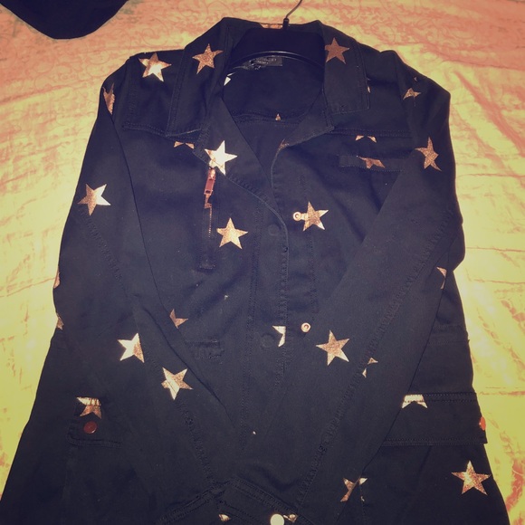 Black lightweight jean material ! Stylish great for a cool summer night , spring or fall