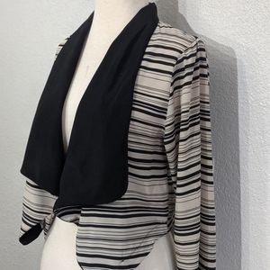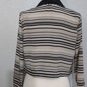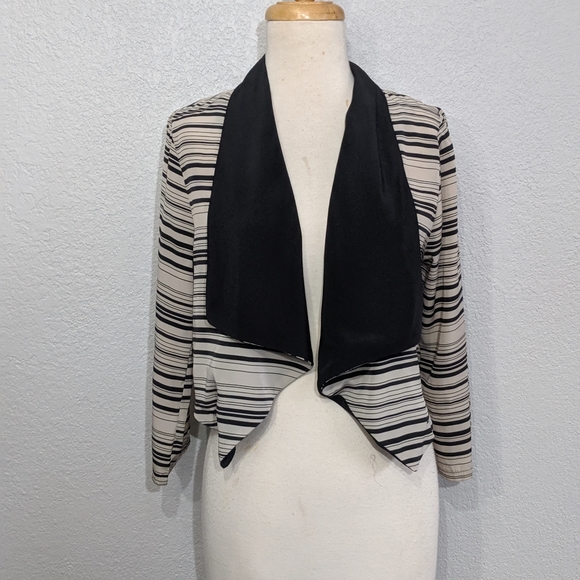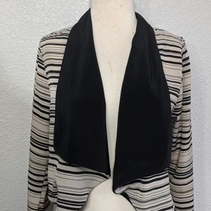 This jacket is a lightweight alternative to wearing a blazer. The sleeves are 3/4. Perfect for spring or to wear in a warm office.