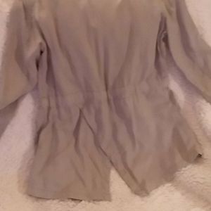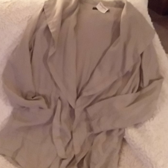 Shawl collar, ties in front, 2 pockets...really nice details front & back! New never worn!
