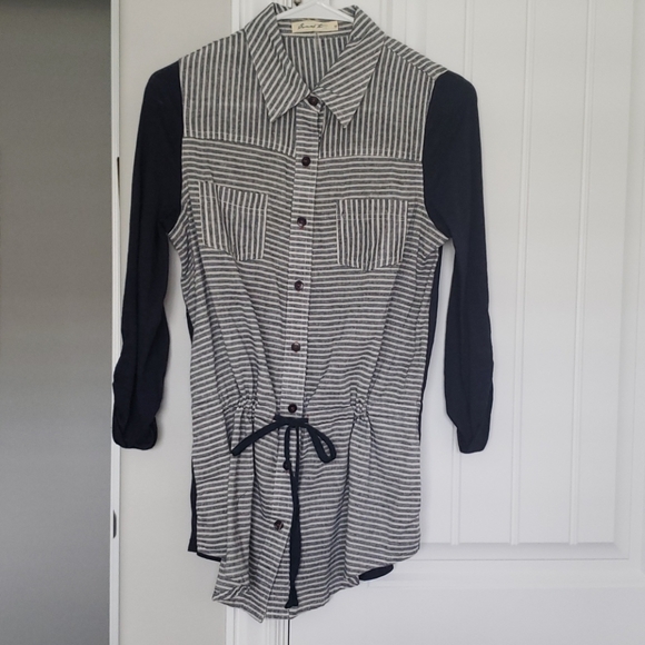 Cute lightweight button down jacket with drawstring waist. In excellent condition and comes from a smoke and pet free home.
