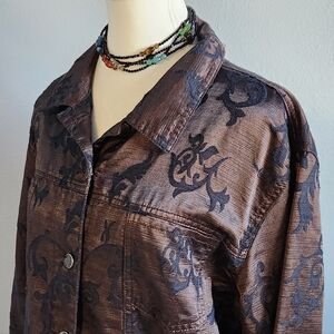 Brown with black swirling design